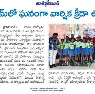 Annual Sports Meet organized at Krushi premises from 20th November 2025 to 22nd November 2025. Overall, 26 schools took part in different events scheduled in 3 days. Mr.M.Bhaskar Rao, President, Col V V Rao, Vice president, LtCol G K Rao, Secretary, Col Ravinder, EC Member distributed Prizes.